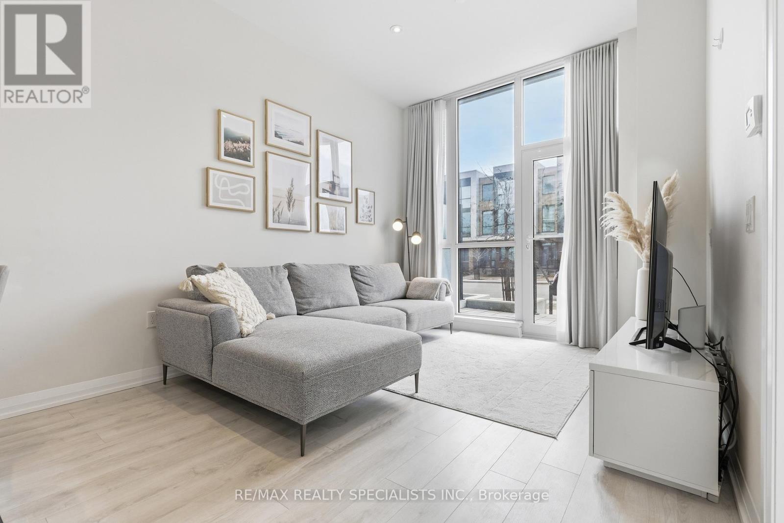 Stunning 2-storey townhouse in the prestigious Perla at Pinnacle Uptown in Mississauga's Hurontario neighbourhood! This 3-bedroom, 3-full-bathroom townhouse offers 1,292 sq ft of living space with ground-level entry and an exceptional layout across two levels. With approximately 10 ft smooth ceilings on both floors and expansive floor-to-ceiling windows, the home is flooded with natural light, creating a warm and inviting atmosphere. The main level features an open-concept living and dining area with potlights, a modern kitchen with quartz countertops, stainless steel appliances, porcelain backsplash, and under-cabinet lighting, plus a 3rd bedroom and full 4-piece bathroom. Hardwood stairs lead to the upper level offering a spacious primary bedroom with a luxurious 5-piece ensuite featuring a soaker tub and separate stand-up shower, a generous 2nd bedroom, full 4-piece hallway bath, in-suite laundry, and a balcony. Modern finishes including mirrored closet doors and glass doors to outdoor spaces. Enjoy seamless indoor-outdoor living with a 125 sq. ft. private patio on the main level, perfect for entertaining, plus an additional 145 sq. ft. private balcony upstairs. Residents enjoy resort-style amenities including an indoor pool, kids' playroom, fitness centre, library, party room, and security concierge. One owned parking spot and locker included. Conveniently situated minutes from Square One Shopping Centre, restaurants, Sheridan College, Celebration Square, GO Transit, Hurontario LRT, and Highways 403/401/407. (42597072)